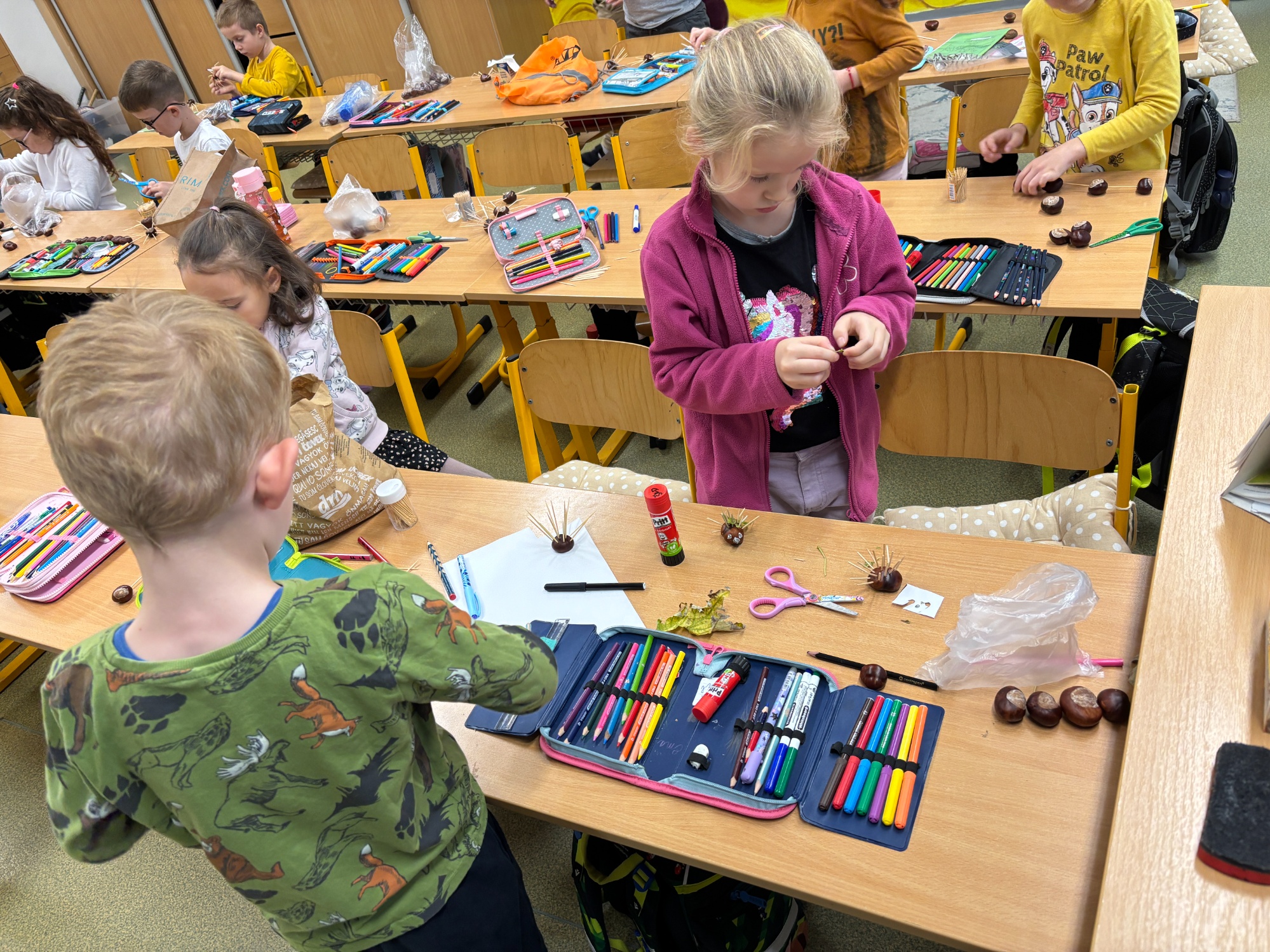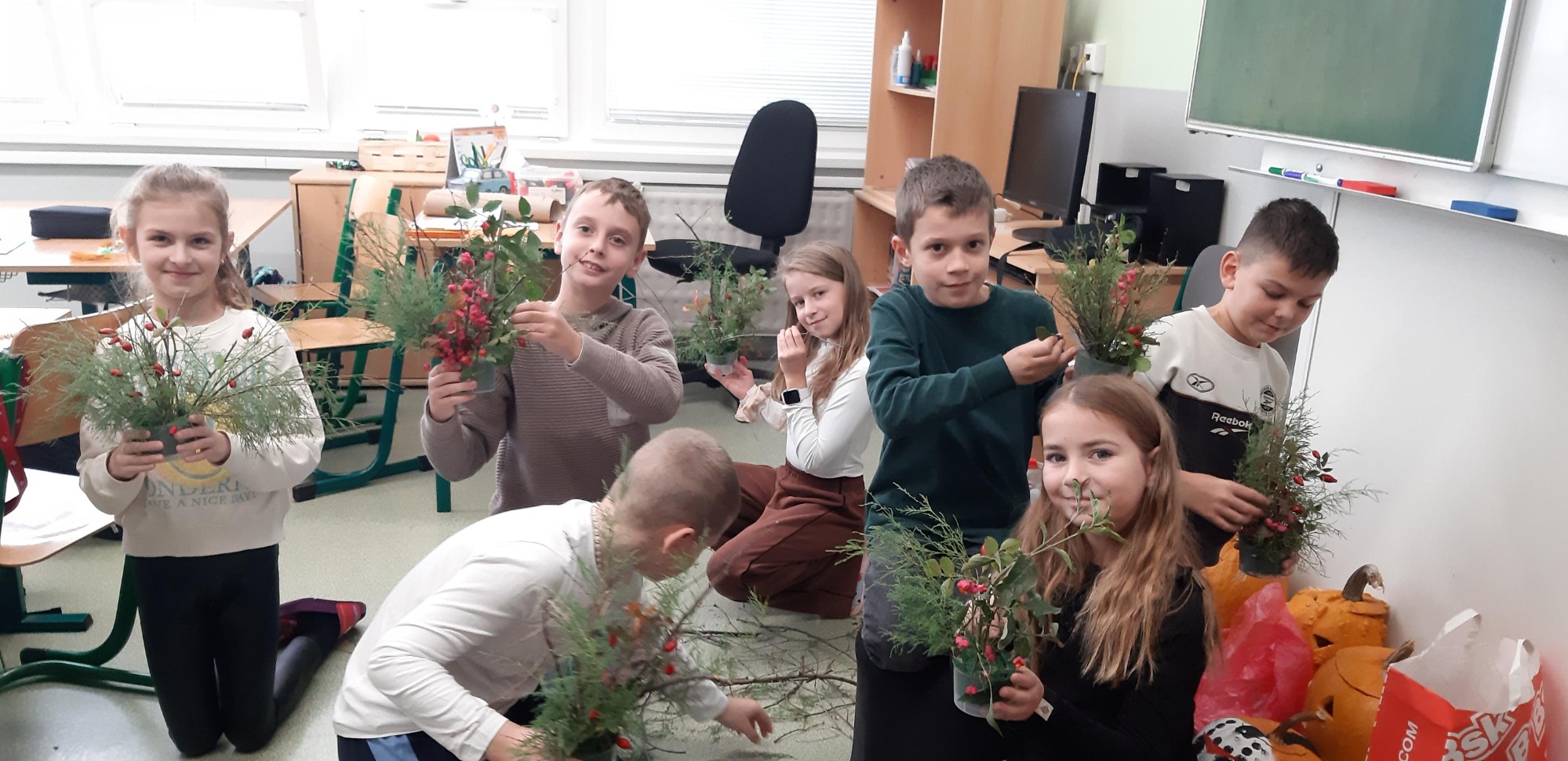 Jeseň v plnej paráde zavítala aj do našej školy. Žiaci na prvom stupni sa s nadšením zapojili do jesenných tvorivých dielní, kde mohli ukázať svoju fantáziu a zručnosti. Vyrábali originálne dekorácie z prírodnín, maľovali tekvice, obrazy, venčeky, vytvárali postavičky z gaštanov. Atmosféra bola príjemná, plná smiechu, farieb, vôní a radosti z tvorenia.